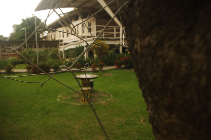 “Dobra, fio” é uma proposição de interação e apropriação da obra de arte. Feito apenas a partir de dobras em um arame galvanizado, foi construído como uma escultura sem base mas também como uma instalação propositiva: é uma escultura que se mexe, modifica, brinca, experimenta, transforma. Fugindo da ideia de arte apenas como contemplação, a peça aproxima a arte da vida e convida o espectador a participar e modificar a obra.