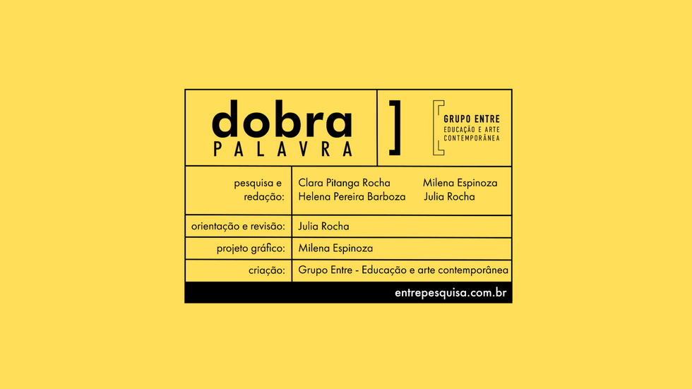 dobra palavraentrepesquisa23 de mar. de 20231 min de leituraAtualizado: 23 de jan. de 2024dispositivo de mediação com arte contemporâneamaterial educativo dobra palavramarço, 2023link para baixar material educativo dobra palavra (para impressão) link para baixar arquivo de apoio dobra palavra link para descargar material educativo dobra palabra en español (para impresión) link para descargar archivo de apoyo dobra palabra en español